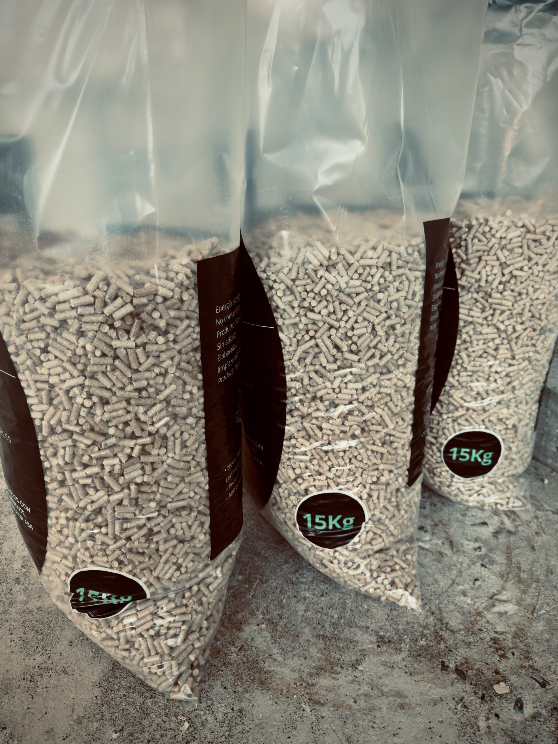 Pellets: Fabricados a partir de subproducto seco, eficiente como biocombustible sustentable.